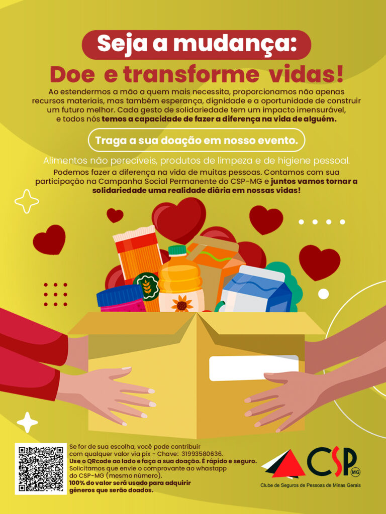 “Seja a mudança: doe e transforme vidas”. Esse é o mote da campanha solidária que o CSP-MG está realizando para ajudar famílias em situação de vulnerabilidade social.
